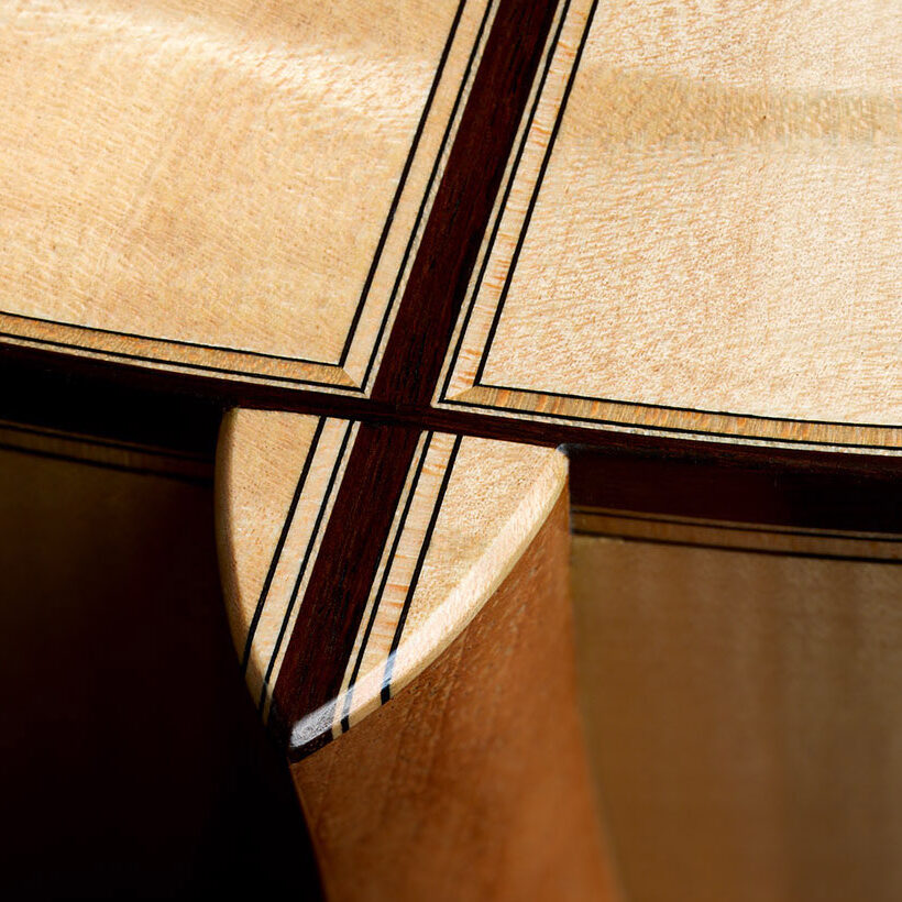 This model has a wooden lattice brace, without carbon, with double sides system. It’s a very appealing middle ground between a lattice guitar and traditional guitar.